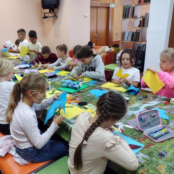 Працівники відділу обслуговування дітей дошкільного віку та учнів 1 – 4 класів організували для відвідувачів майстер-клас «І дорослі, і малі прагнуть миру на землі». Учні 2-Б й 3-Б класів Першої міської гімназії вчилися створювати об’ємну аплікацію з кольорового паперу. У підсумку в учасників заходу вийшли синьо-жовті голуби, які ніби так і прагнуть злетіти зі своїх паличок-сідел у безхмарну височінь.