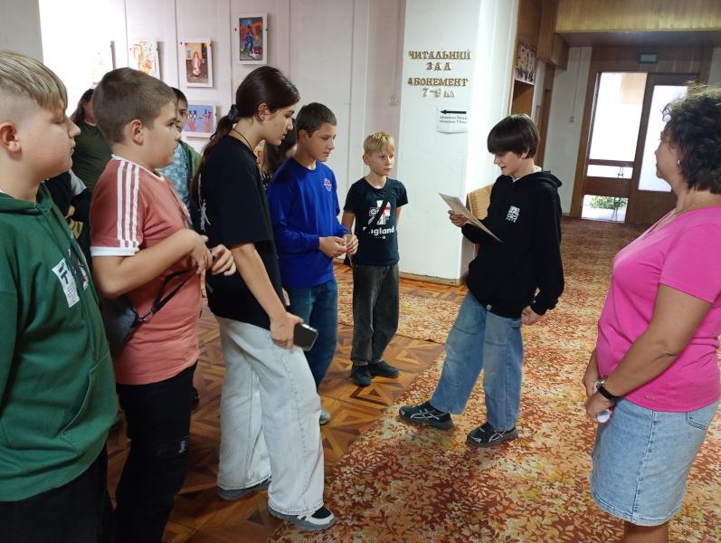 Інтро до квесту звучить від імені козака, образ якого блискуче втілив актор Черкаського академічного обласного українського музично-драматичного театру ім. Т.Г. Шевченка Олександр Гуменний. Козак закликає дітлахів вирушити в захопливі мандри бібліотекою – що, власне, читачі й зробили. На своєму шляху вони відтворювали карту України, розшифровували секретні послання, розгадували ребуси, шукали підказки в книгах і настільних іграх, проходили онлайн-квіз, присвячений книзі «Таємниця козацького скарбу». До слова, в останній ви також можете зіграти: для цього потрібно перейти на «Ігровий майданчик» нашого сайту, у рубрику «Літературні ігри».