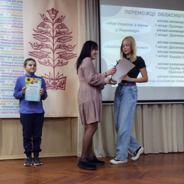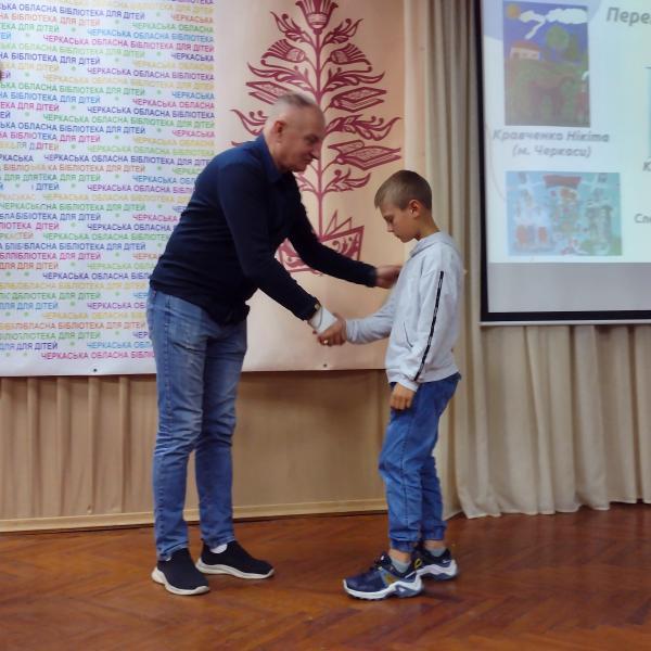 Переможці обласних етапів відразу чотирьох всеукраїнських конкурсів отримали заслужені нагороди напередодні Всеукраїнського дня бібліотек. 28 вересня в Черкаській обласній бібліотеці для дітей для юних письменників, художників, майстрів народного мистецтва й найактивніших читачів пройшла святкова програма «Вітаємо книгодрузів!». Лауреати з усієї області отримали дипломи й чудові призи – подарункові сертифікати інтернет-магазину «КнигоЛенд» і набори солодощів. Подарунки для переможців профінансував філантроп, керівник групи онлайн-компаній «Олімп-Гарант» Руслан Хомідов. Ми надзвичайно вдячні панові Руслану за підтримку талановитих дітей і бібліотечних проєктів!