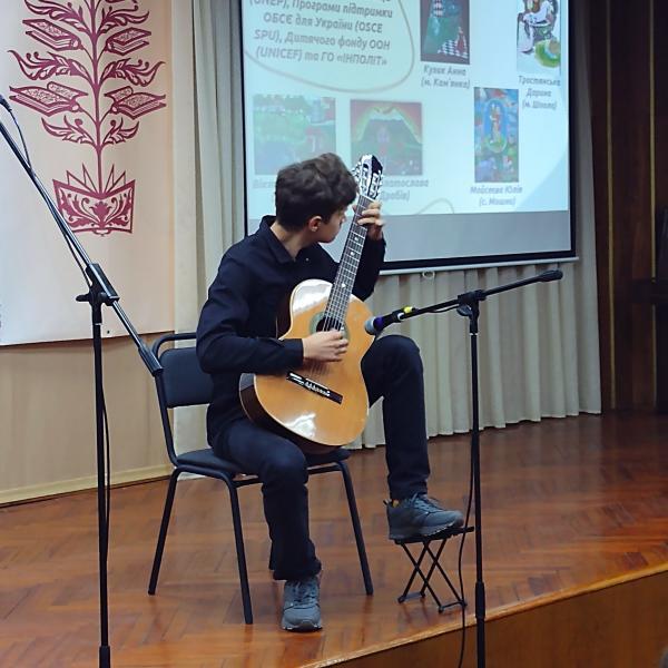 Прозвучали для учасників дійства й творчі подарунки: дві прекрасні пісні заспівала учениця Черкаської дитячої школи мистецтв Анна Вокіна, арку з «Болеро» Моріса Равеля виконав на гітарі учень цього ж закладу Тімур Пахаренко. Дякуємо юним артистам за небайдужість і талановите виконання, що дуже прикрасило наше свято!