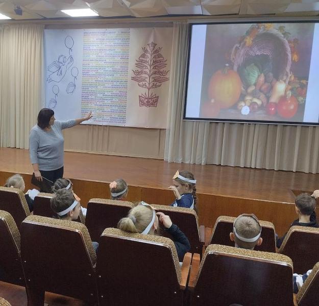 Працівники відділу обслуговування дітей дошкільного віку та учнів 1 – 4 класів підготували для учнів 1-Б класу Першої міської гімназії свято осені «Овочевий бенкет». Малеча добряче натішилася, розповідаючи й слухаючи вірші та загадки про золоту пору, малюючи смачні сезонні овочі, беручи участь в естафетах і рухливих іграх, дізнаючись легенди про картоплю, горіхи, гарбузи й моркву. У подарунок за активну участь і виконання різних завдань дітлахи отримали колоритні листівки з кумедними звірятами й висловами про користь читання.