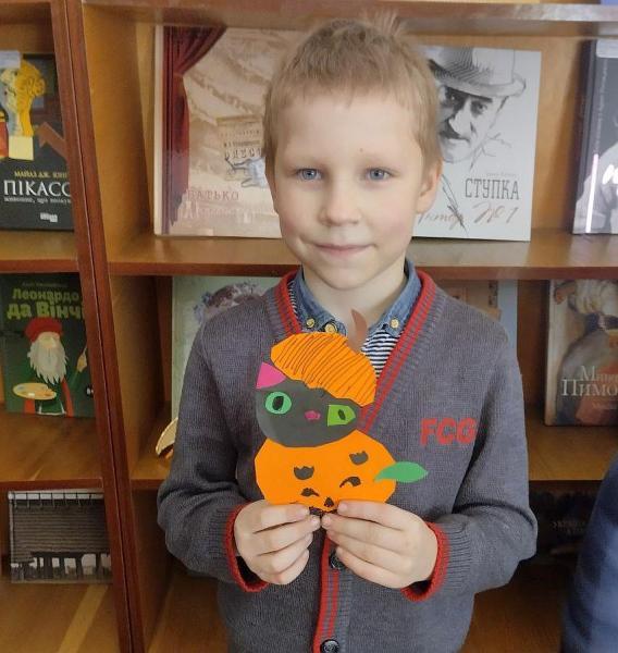 А на любителів творчих завдань у цьому ж відділі чекав майстер-клас «Котик і гарбузик». Учні 2-Б класу Першої міської гімназії охоче озброїлися клеєм, кольоровим папером і ножицями, аби створити кумедну барвисту композицію на пам’ять.