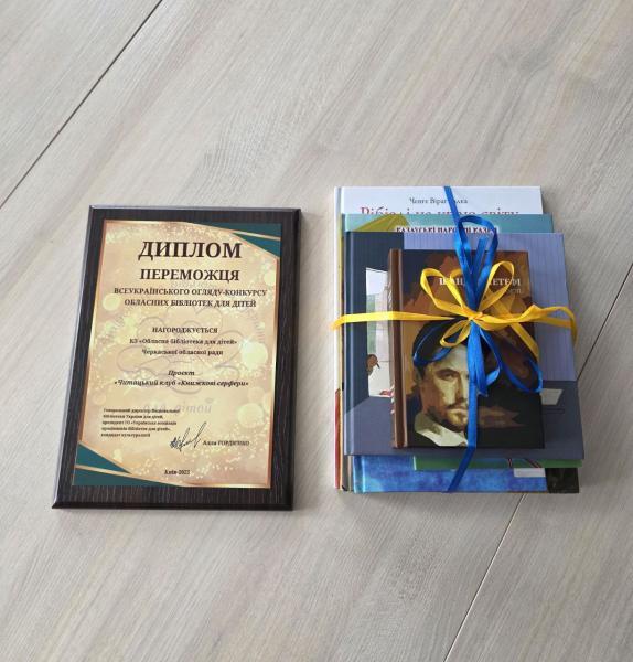 Наближаємося до завершення року зі ще однією нагородою! Черкаська обласна бібліотека для дітей потрапила до числа переможців Всеукраїнського огляду-конкурсу бібліотек для дітей – 2025! Диплом переможця, низку книжкових та інших призів, а також 20 тис. гривень від Благодійного фонду «МХП – громаді» нашому закладу цього року приніс проєкт «Читацький клуб «Книжкові серфери». У межах конкурсу ми презентували роботу читацького об’єднання, у т.ч. історію його створення, цікаві формати, що урізноманітнюють наші засідання, відгуки учасників тощо. Відеопрезентацію проєкту, що принесла нам лаври, можна переглянути на YouTube-каналі бібліотеки.