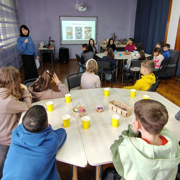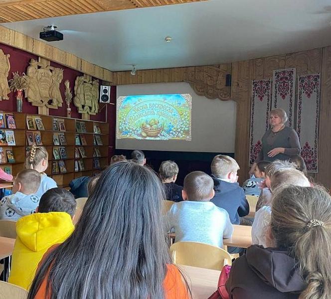 Більше дізнатися про походження й значення свята (у контексті канонічних легенд про останні дні й воскресіння Ісуса Христа), вміст великоднього кошика й важливий для вірян розклад на тиждень перед святою неділею мали нагоду користувачі відділу обслуговування дітей дошкільного віку та учнів 1 – 4 класів. Для учнів 2-Б, 3-Б, 4-В класів Руськополянського ЗЗСО №1, 1-Б класу Першої міської гімназії тут провели годину народознавства «Весна воскресла – Великдень принесла». Захід відбувся в межах народознавчої світлиці з популяризації духовної спадщини України «Джерельце».
