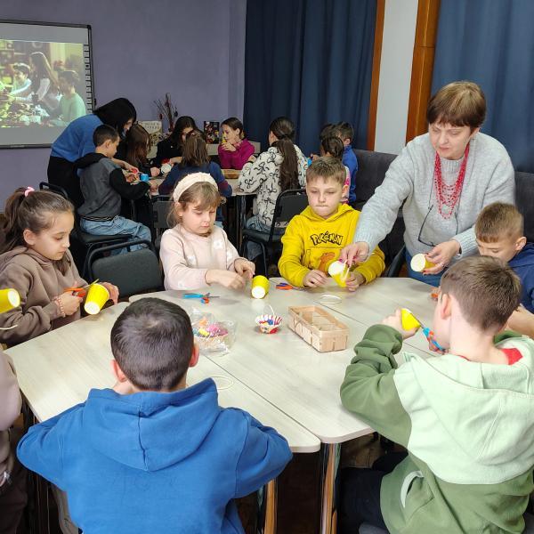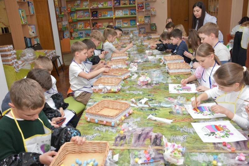 Спільно зі студією живопису Artishok бібліотекарі провели майстер-клас із виготовлення великоднього кошика «Закрутився у писанці світ». Учні 4-Б класу Першої міської гімназії оздоблювали кошик-основу декоративними мініатюрними яєчками різних кольорів і тематичними барвистими малюнками. Майстер-клас з аналогічною назвою, тільки вже в техніці аплікації, працівники відділу провели для учнів 3-А класу СПШ № 3. У його межах дітки прикрашали паперове яйце-основу різнокольоровими квіточками.
